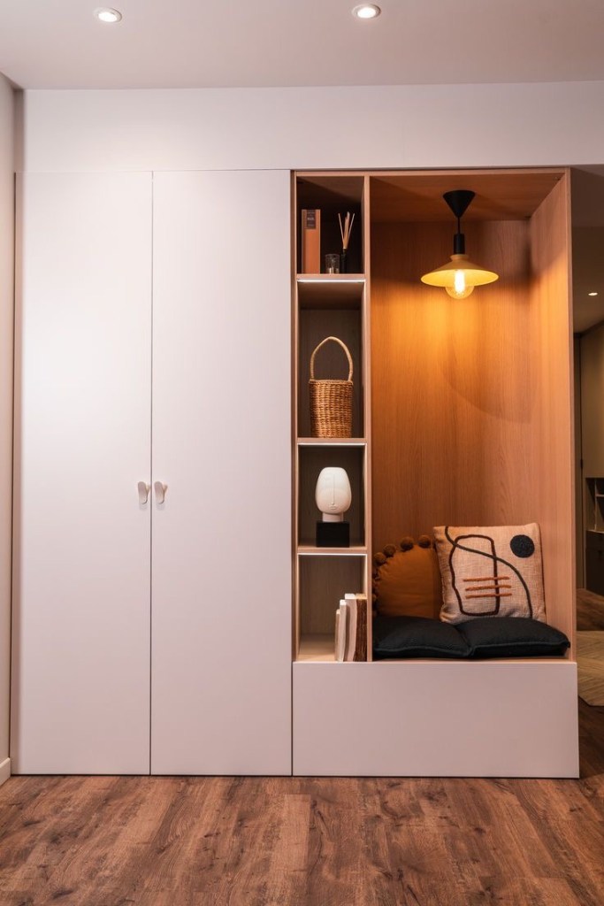 - Meubles modulables : un banc pliable ou des crochets rétractables peuvent être idéaux pour les entrées réduites.